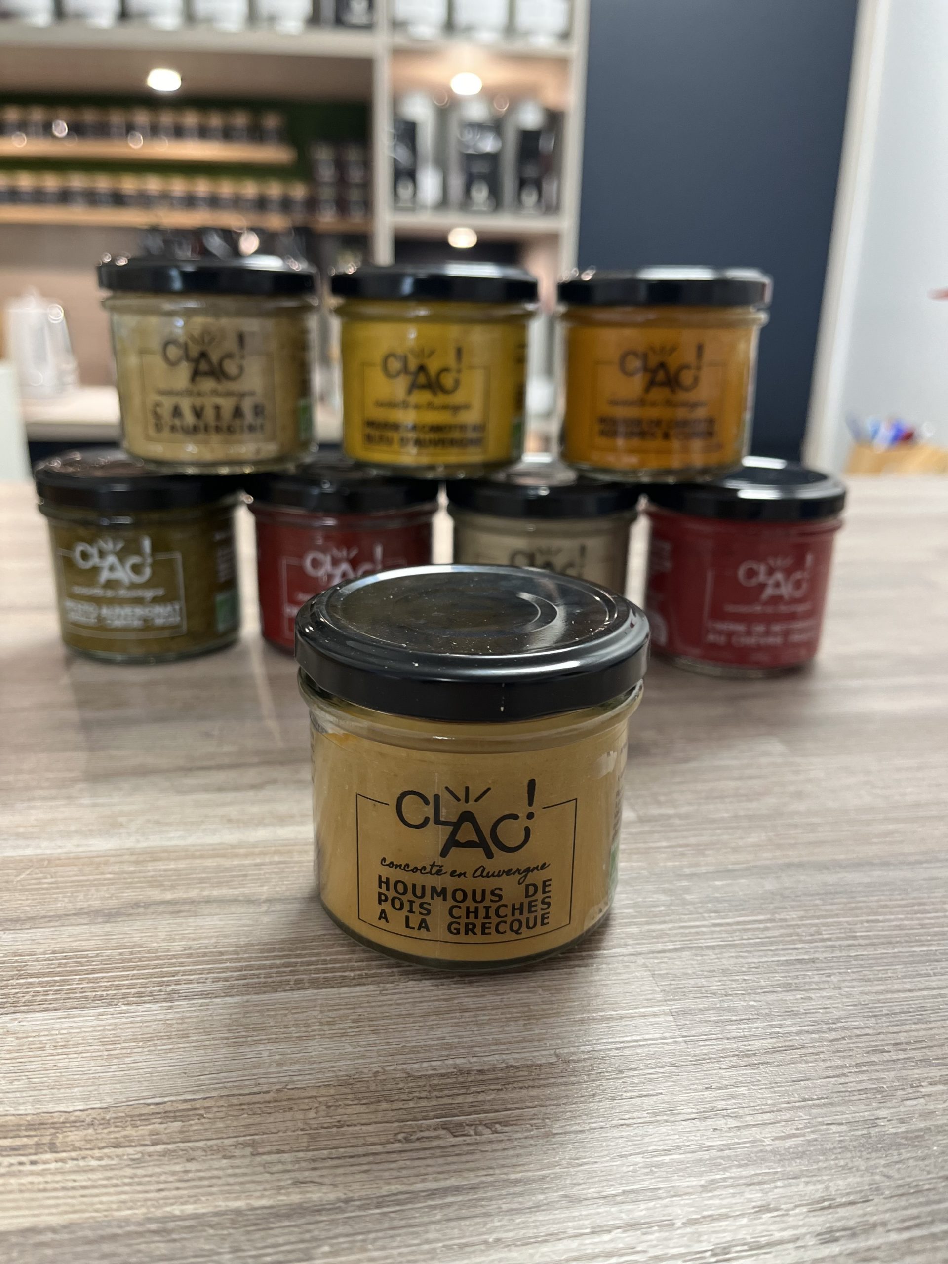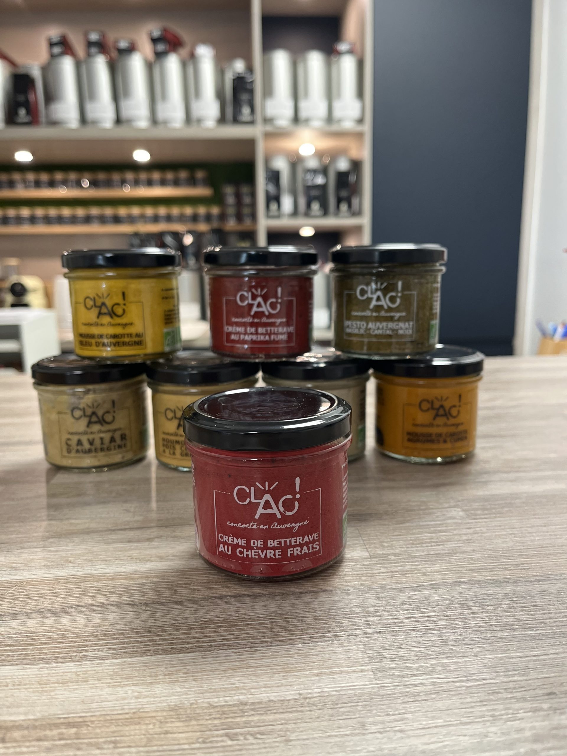Découvrez CLAC ! Une marque culinaire dynamique, valorisant le bio, le local et l’artisanat. La marque collabore avec des producteurs locaux auvergnats pour vous offrir une sélection de produits frais et savoureux. Divers gammes de tartinables apéritifs originaux disponibles en boutique.
