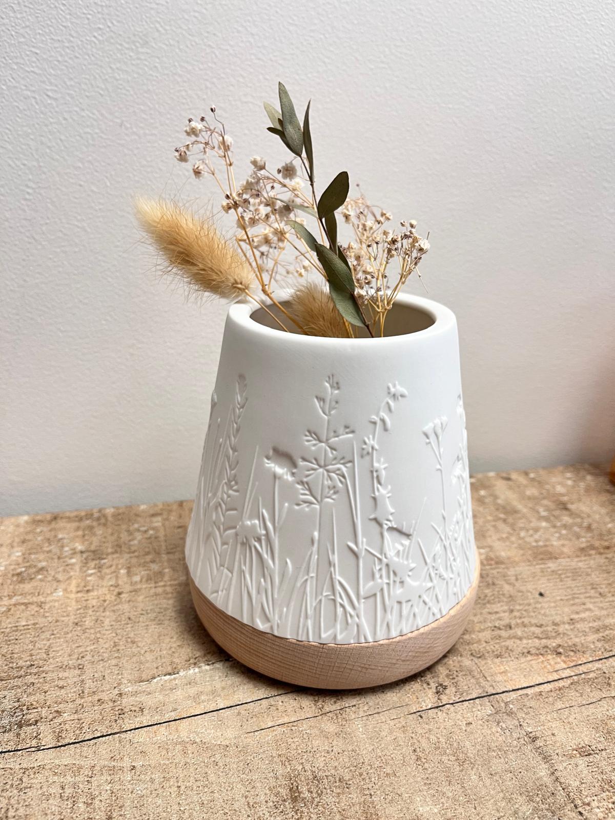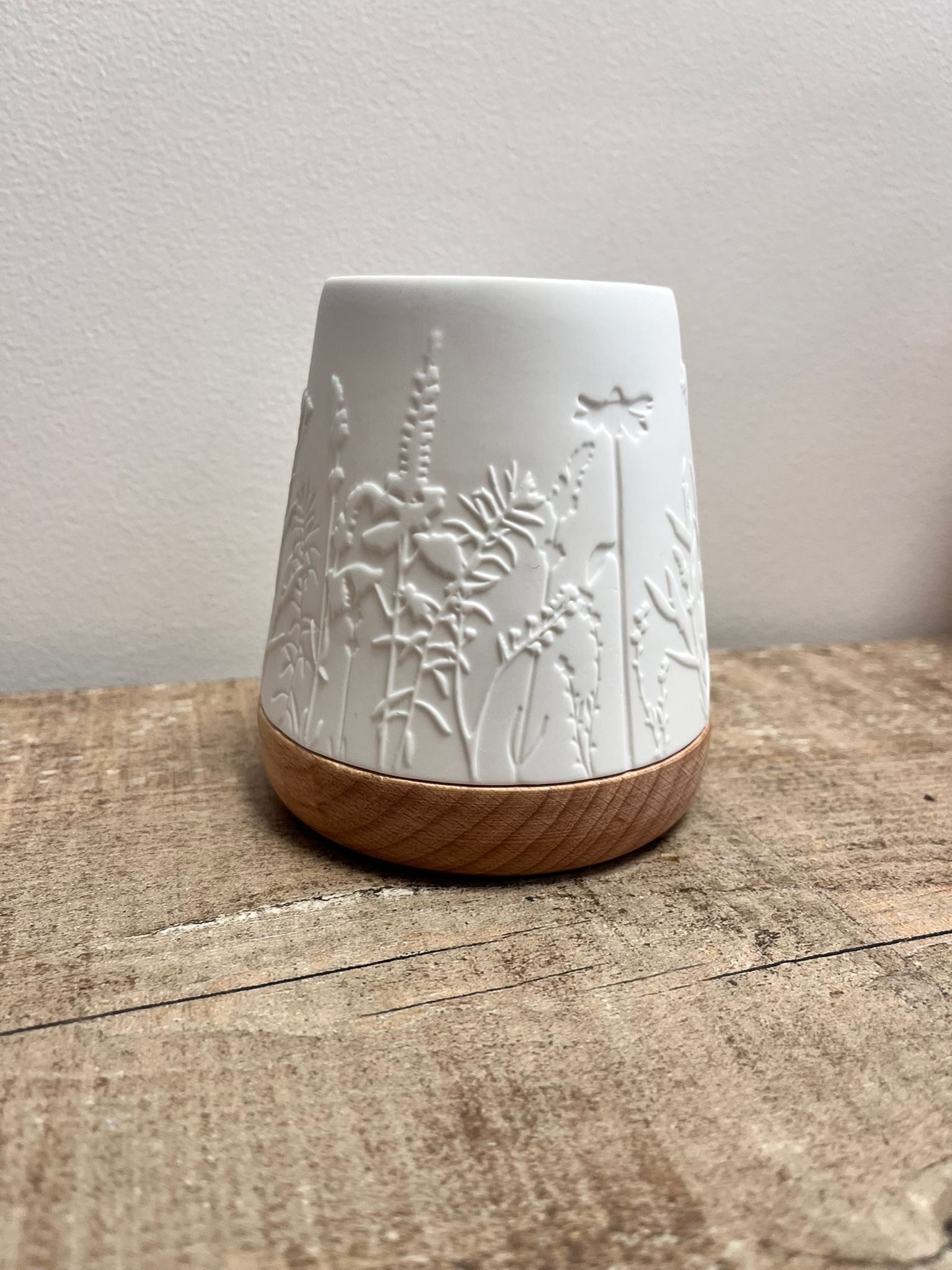 Photophore en porcelaine et bois grand modèle